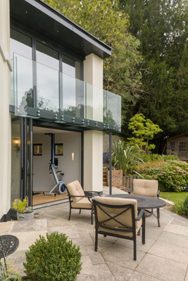 A bold, contemporary extension which compliments this Victorian family home.The extension provides recreational facilities including a gym, a bar area, state of the art games room and a first floor living area with a balcony overlooking the gardens. Finished to an exceptional standard with high-end bespoke fixtures and fittings.